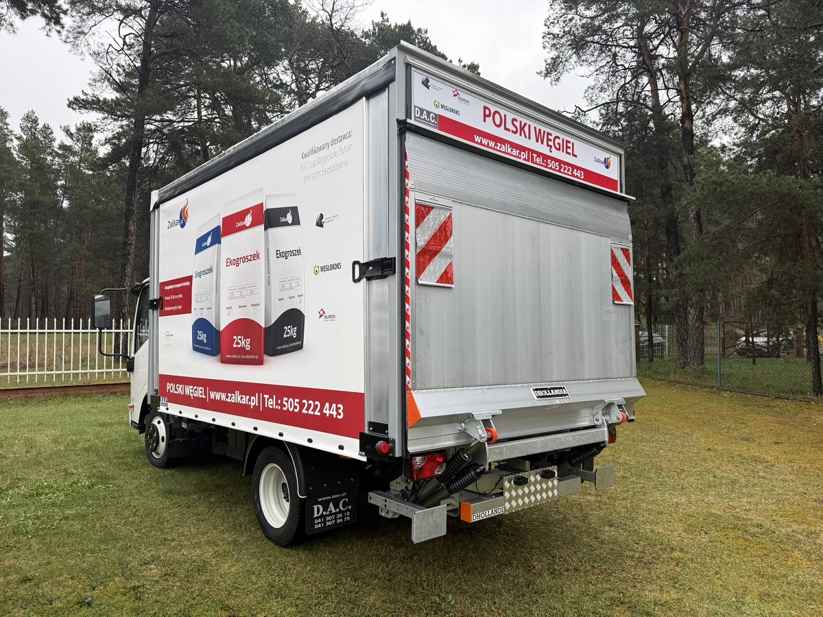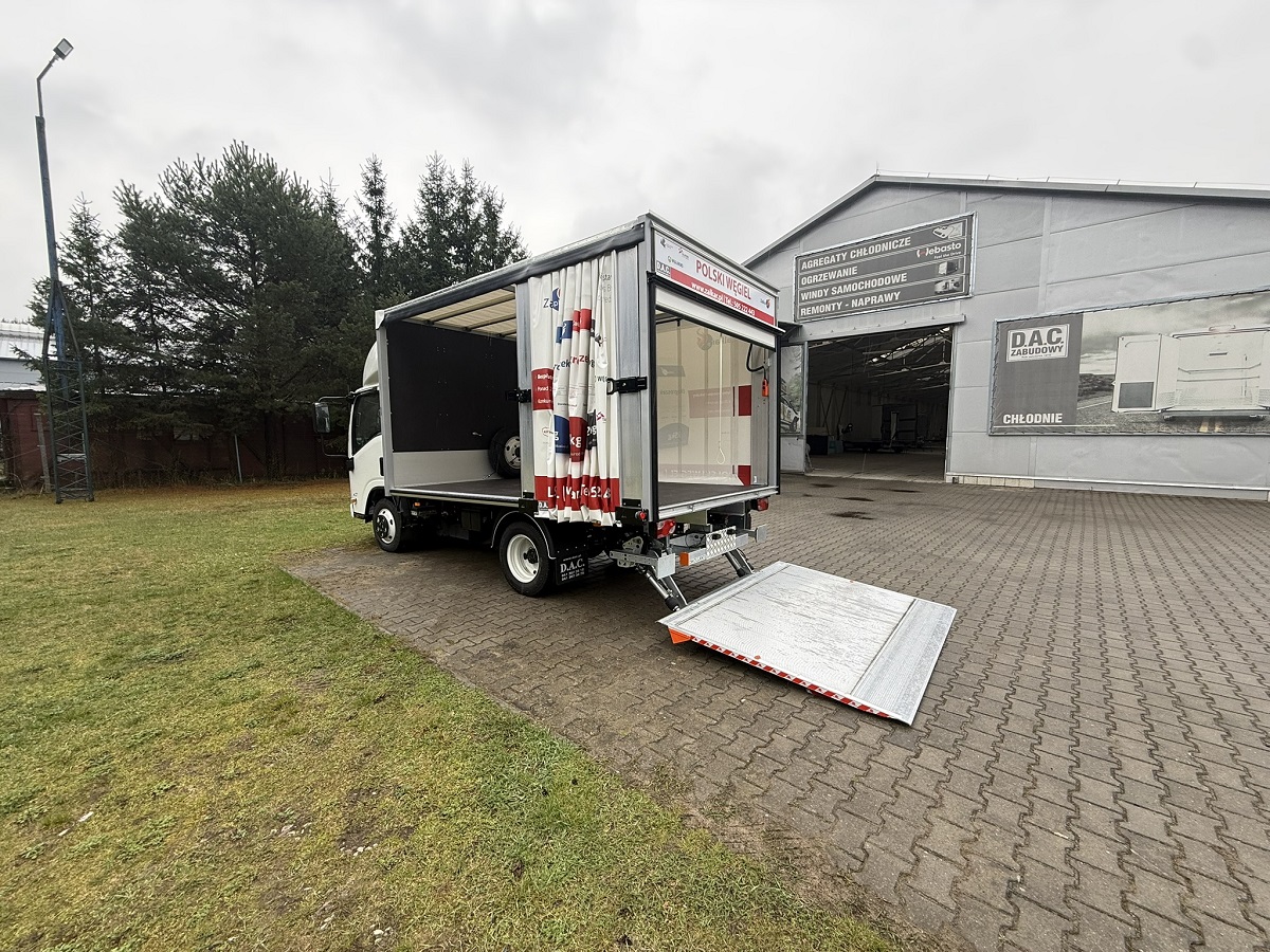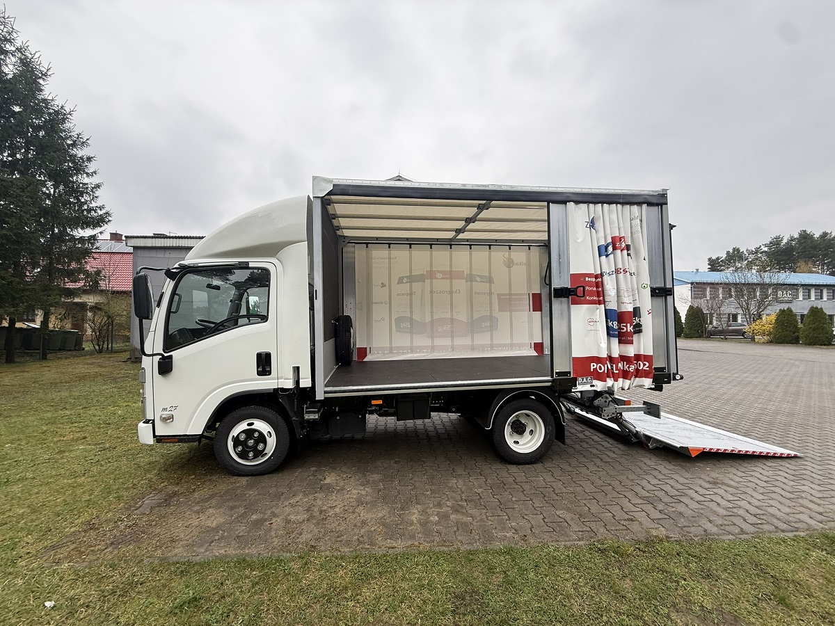 Skrzynia wyposażona w uchwyty do mocowania ładunku, oświetlenie wewnętrzne zabudowy, oświetlenie gabarytowe, nadkola, chlapacze, zderzaki przeciw rowerowe, odboje rampowe, pełna paleta kolorystyczna plandek.